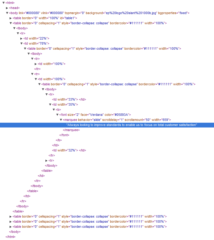 One of the major problems with the site was a lack of separation between content and style. The entire structure was created using a HTML table, which it isn’t designed for. The CSS was practically non-existent as all of the styling was done inside the HTML. This led to a horrible tangle of HTML code that would be extremely difficult to maintain.